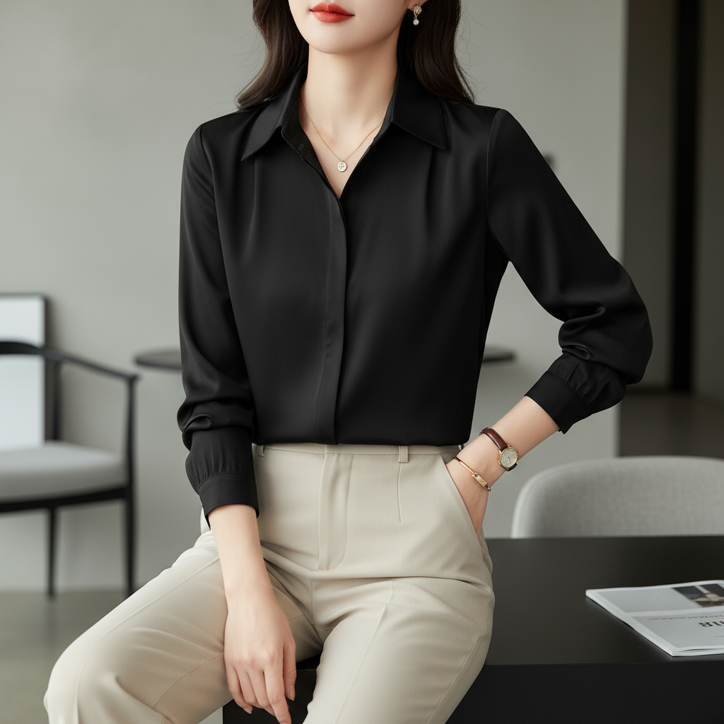• Détails raffinés : Les manches bouffantes ajoutent une touche de féminité et de sophistication, tandis que le col classique reste élégant et professionnel.