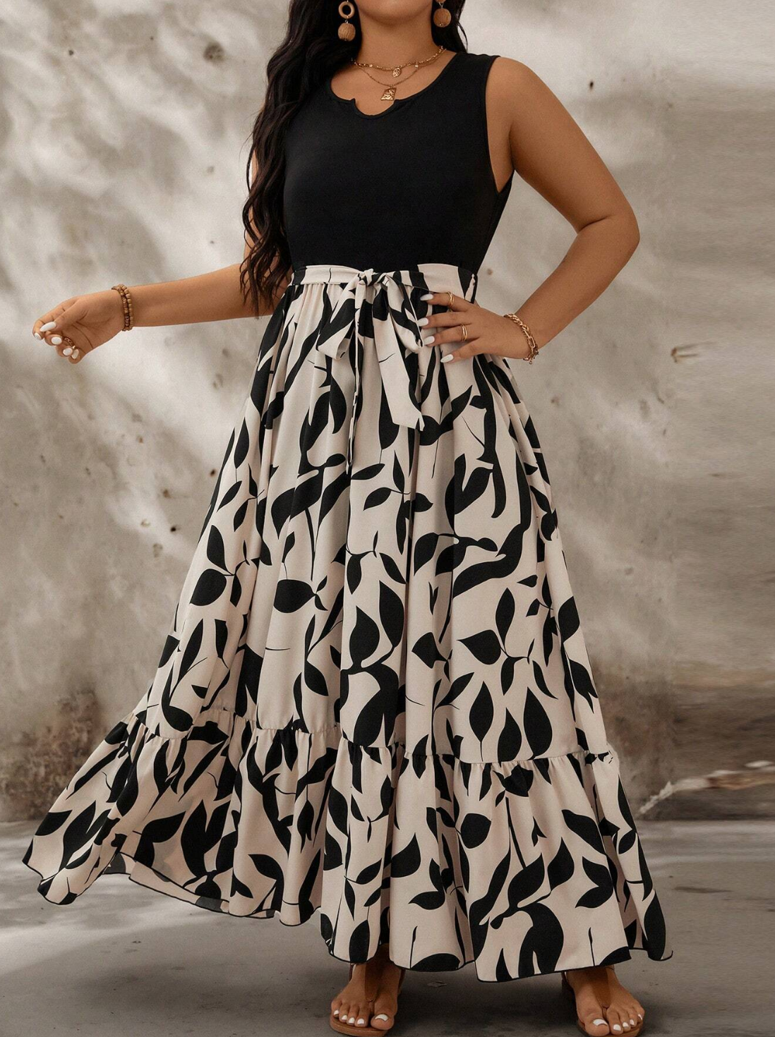 Robe sans manches avec design 2 en 1 et robe évasée élégante 638